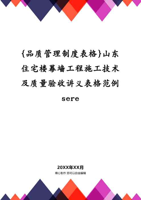 本站资深用户发布了最新的《{品质管理制度表格}山东住宅楼幕墙工程施工技术及质量验收讲义表格范例sere》文档,以下内容为预览,详细内容可下载阅读。 声明:本站所有文章,如无特殊说明或标注,均为本站原创发布。任何个人或组织,在未征得本站同意时,禁止复制、盗用、采集、发布本站内容到任何网站、书籍等各类媒体平台。如若本站内容侵犯了原著者的合法权益,可联系我们进行处理。