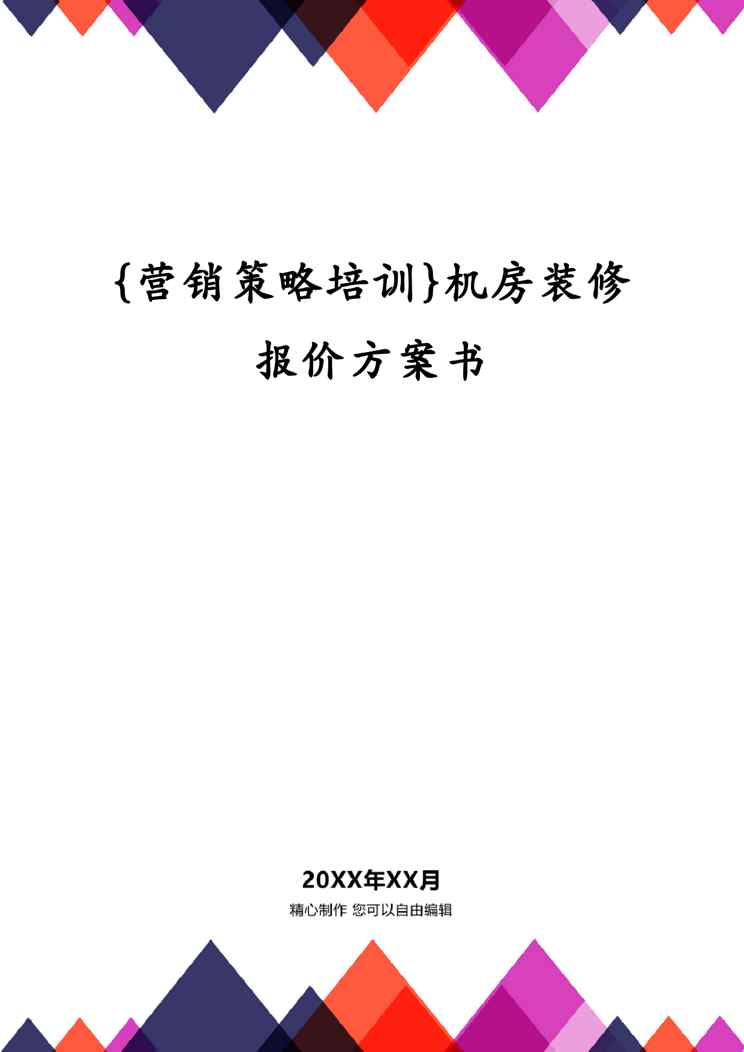 本站资深用户发布了最新的《{营销策略培训}机房装修报价方案书》文档,以下内容为预览,详细内容可下载阅读。 声明:本站所有文章,如无特殊说明或标注,均为本站原创发布。任何个人或组织,在未征得本站同意时,禁止复制、盗用、采集、发布本站内容到任何网站、书籍等各类媒体平台。如若本站内容侵犯了原著者的合法权益,可联系我们进行处理。