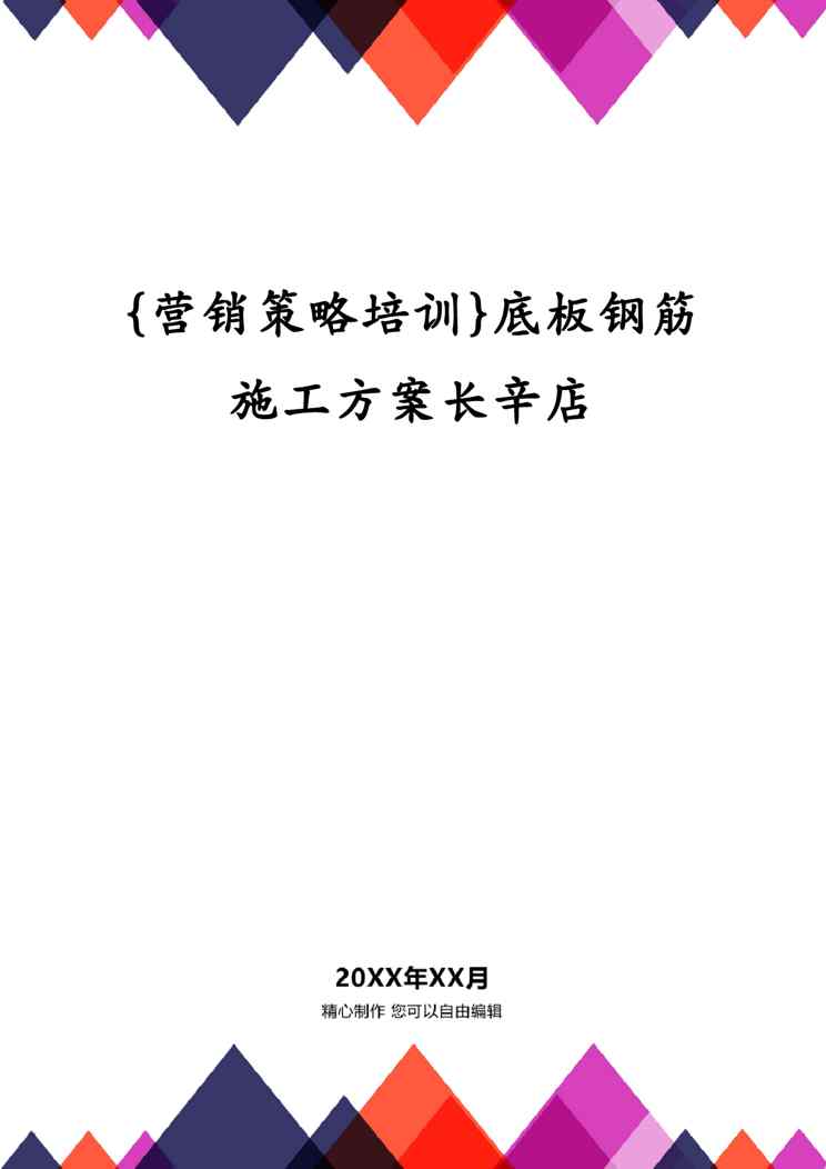 本站正式发布了《{营销策略培训}底板钢筋施工方案长辛店》文档,文档详细内容可下载阅读。 声明:本站所有文章,如无特殊说明或标注,均为本站原创发布。任何个人或组织,在未征得本站同意时,禁止复制、盗用、采集、发布本站内容到任何网站、书籍等各类媒体平台。如若本站内容侵犯了原著者的合法权益,可联系我们进行处理。