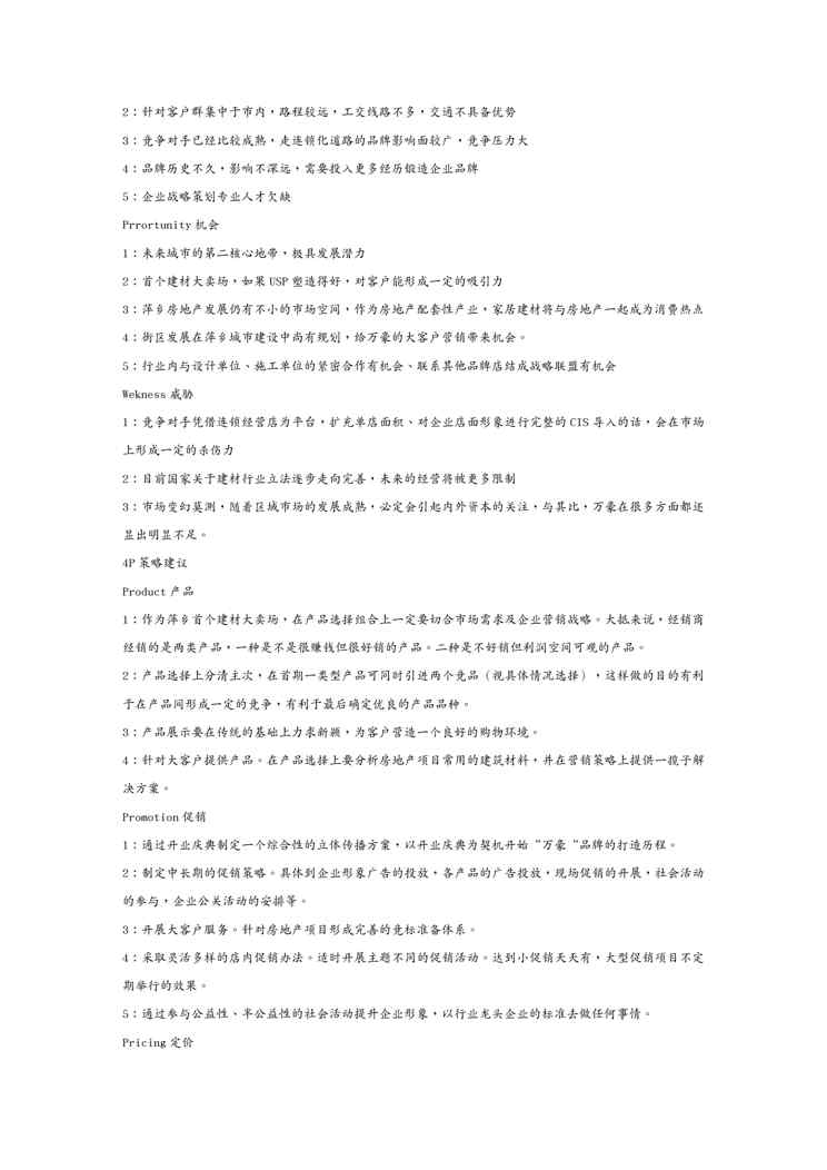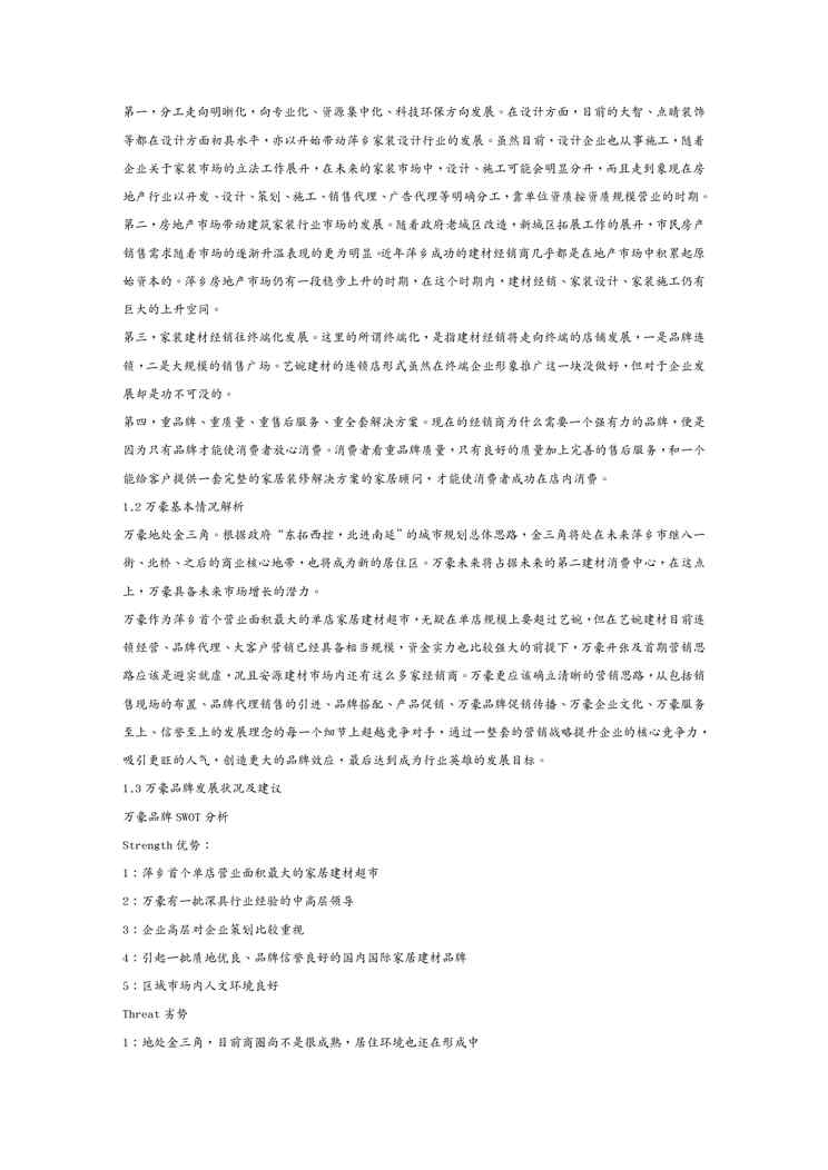 不久前,最新文档《{营销策划}万豪家居建材超市首期营销策划方案》全文正式在本站发布,感兴趣的用户可以下载阅读。 声明:本站所有文章,如无特殊说明或标注,均为本站原创发布。任何个人或组织,在未征得本站同意时,禁止复制、盗用、采集、发布本站内容到任何网站、书籍等各类媒体平台。如若本站内容侵犯了原著者的合法权益,可联系我们进行处理。