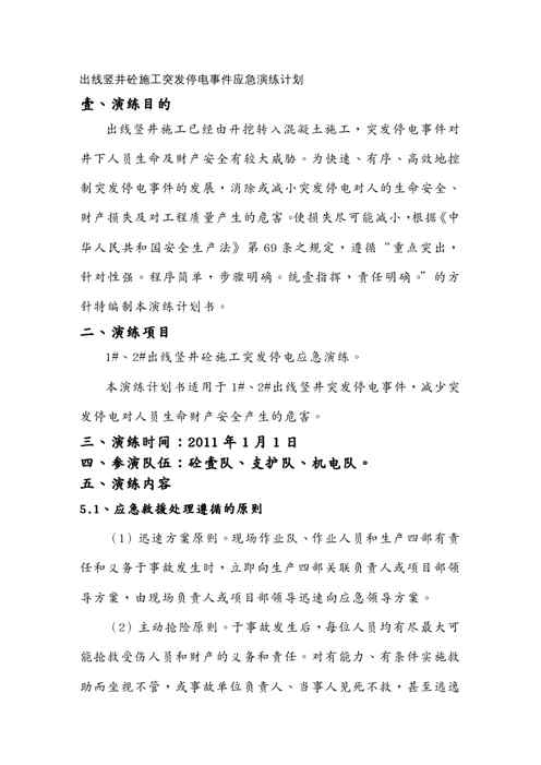 本站资深用户发布了最新的《建筑工程管理出线竖井砼施工停电应急演练计划》文档,以下内容为预览,详细内容可下载阅读。 声明:本站所有文章,如无特殊说明或标注,均为本站原创发布。任何个人或组织,在未征得本站同意时,禁止复制、盗用、采集、发布本站内容到任何网站、书籍等各类媒体平台。如若本站内容侵犯了原著者的合法权益,可联系我们进行处理。