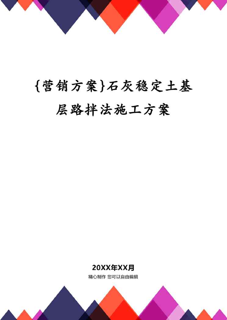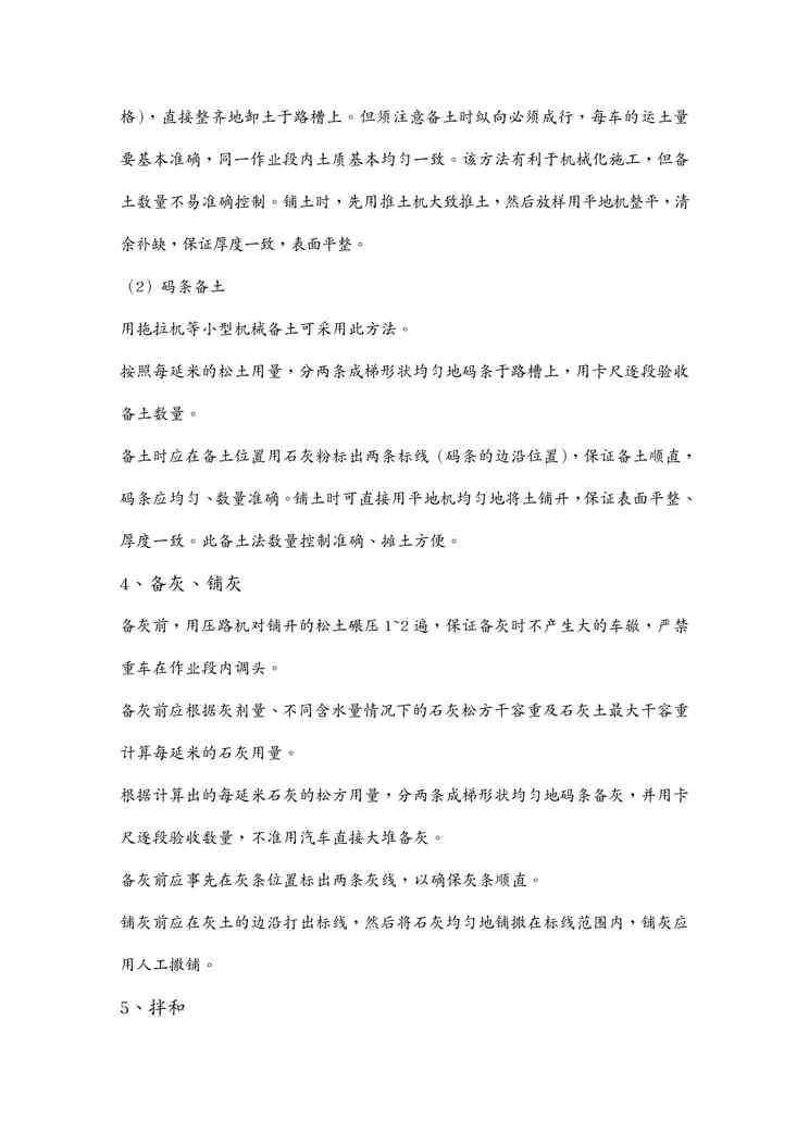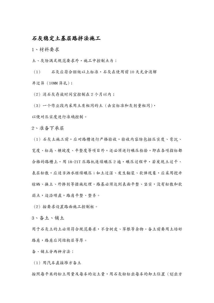 本站资深用户发布了最新的《{营销方案}石灰稳定土基层路拌法施工方案》文档,以下内容为预览,详细内容可下载阅读。 声明:本站所有文章,如无特殊说明或标注,均为本站原创发布。任何个人或组织,在未征得本站同意时,禁止复制、盗用、采集、发布本站内容到任何网站、书籍等各类媒体平台。如若本站内容侵犯了原著者的合法权益,可联系我们进行处理。