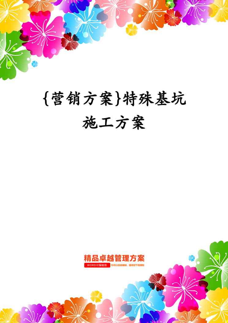 本站资深用户发布了最新的《{营销方案}特殊基坑施工方案》文档,以下内容为预览,详细内容可下载阅读。 声明:本站所有文章,如无特殊说明或标注,均为本站原创发布。任何个人或组织,在未征得本站同意时,禁止复制、盗用、采集、发布本站内容到任何网站、书籍等各类媒体平台。如若本站内容侵犯了原著者的合法权益,可联系我们进行处理。